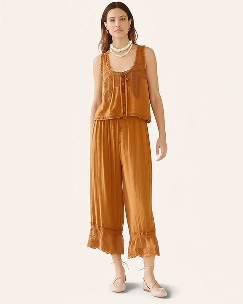 Whisper-light cotton meets vintage romance in this breezy lace-trimmed set. Designed to turn heads without even trying, it’s pure softness wrapped in playful charm.