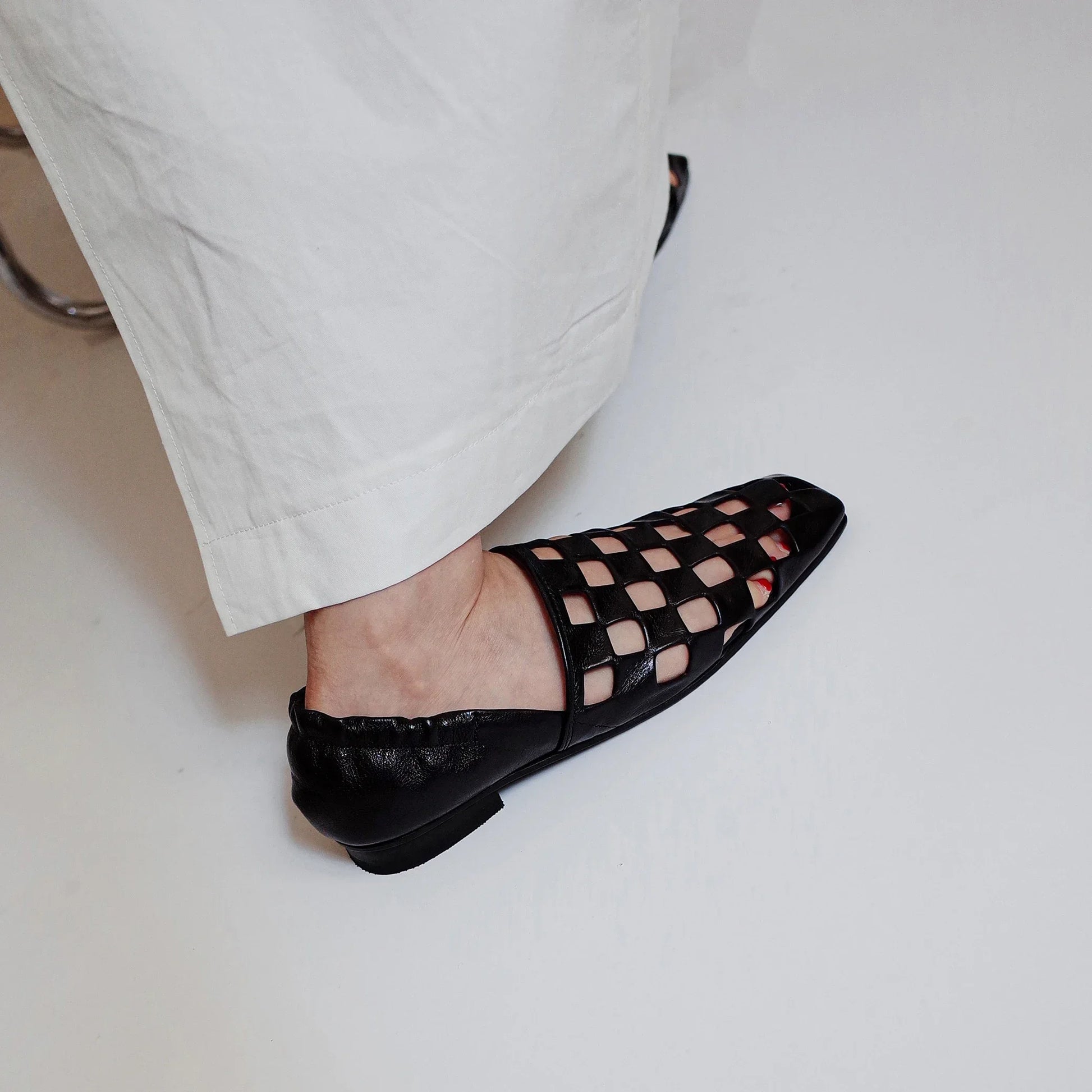 The kind of mules so unique people will be thinking you came off the runway with them. With our ultrasoft custom soles, and elastic back strap, these checkered leather mules will have head turning and your feet sleeping.