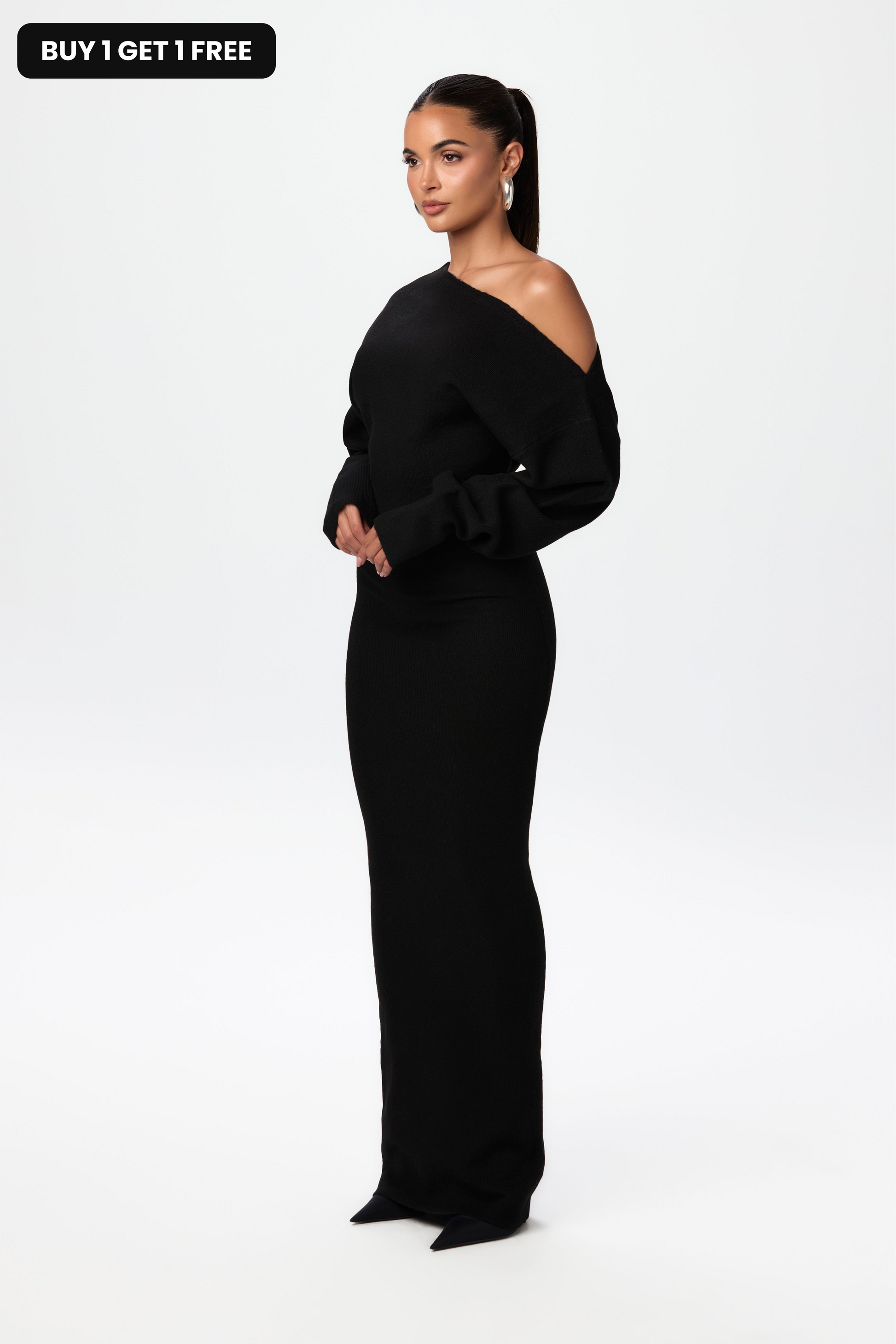 This body-loving dress hugs in all the right places - the off-shoulder design draws eyes up while the soft knit fabric molds perfectly to your curves, creating a silhouette that demands attention.
